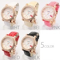 ベゼル部分と、文字盤4時位置のハートデザインと共にセットされたラインストーンが、手元の印象を明るく演出してくれます。
